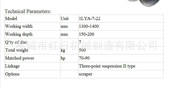久保田圆盘犁技术参数: