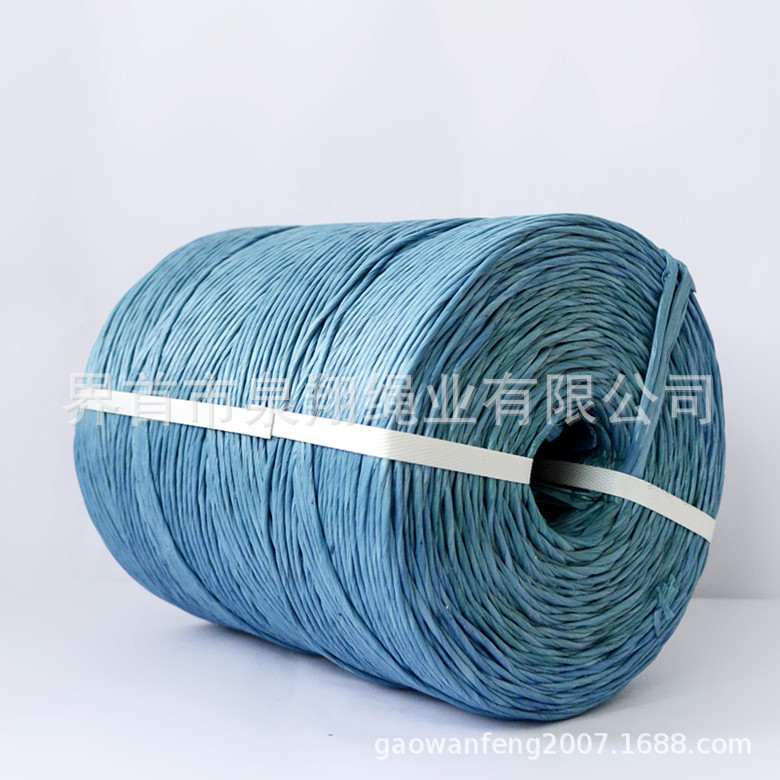 以聚丙烯树脂为主要原料,经过高温挤出,单向进行拉伸制成半成品,简称绳胚。绳胚经过筛选、加捻、收卷、验收、包装入库,发货。
