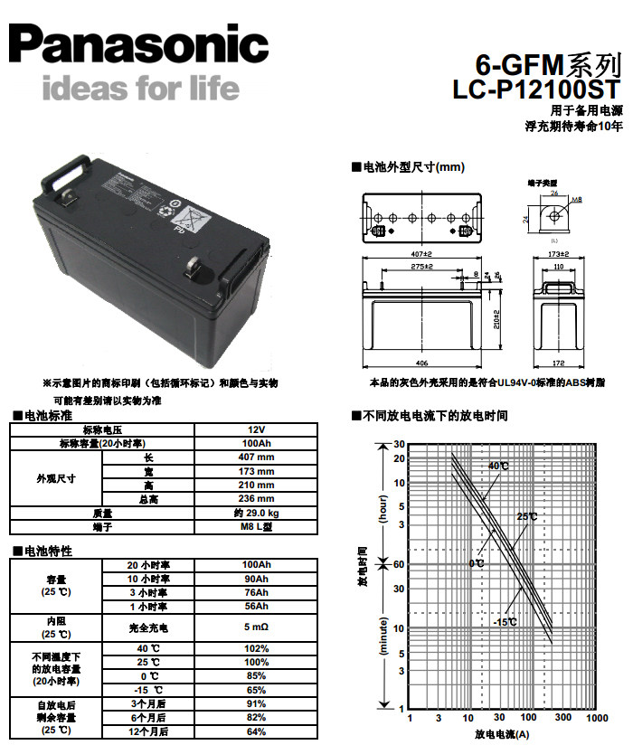 长寿命、高容量、优越的过放电后的恢复性;