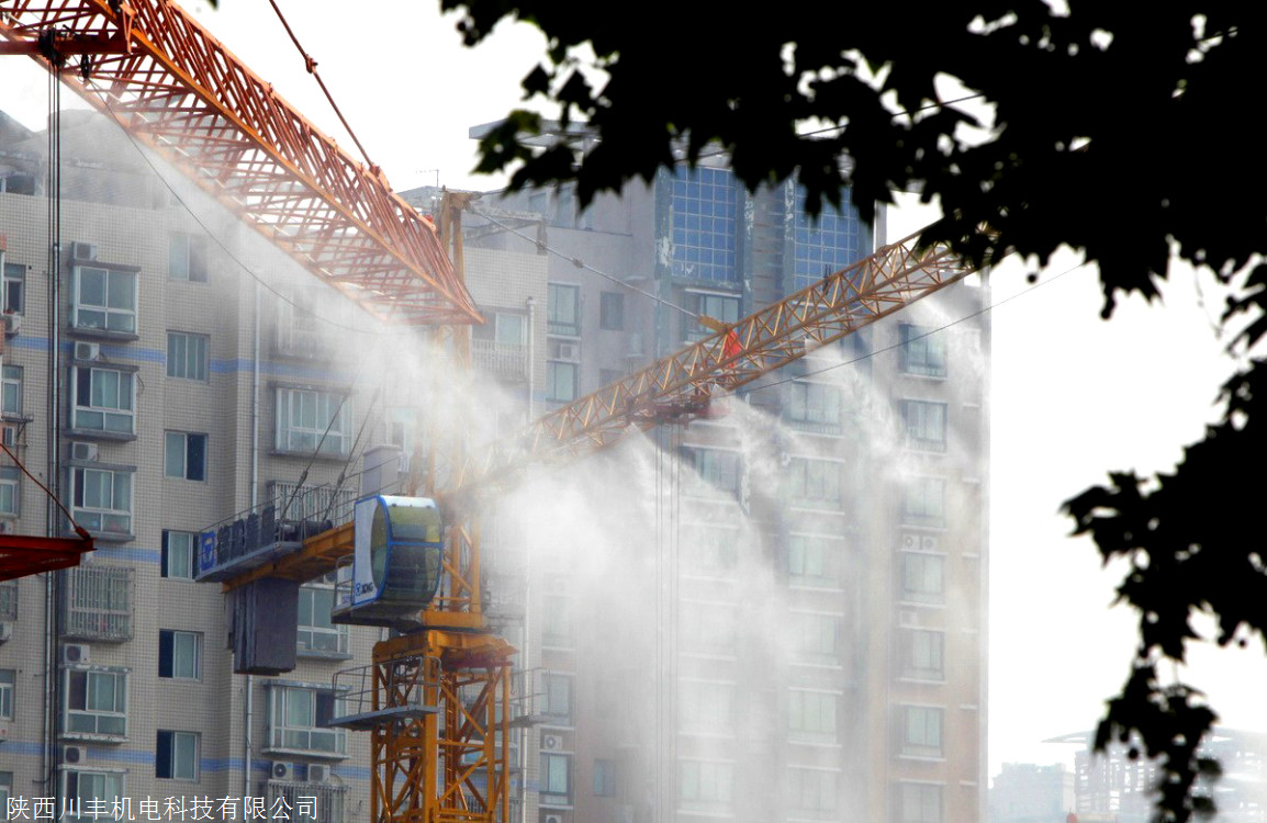 工地围挡喷淋降尘原理: 围挡塔吊喷淋降尘系统是一种新型降尘系统。其原理是利用高压泵将水加压经高压管路送至高压喷嘴,形成飘飞的水雾,由于水雾颗粒是微米级的,非常细小,能够吸附空气中杂质,营造良好清新的空气,达到降尘、加湿等多重功效。加上药水更具有打药、消毒、清洗等多用途。一举多得,使用经济。系统运行维护成本低,经济实用,控制系统可实现无人自动控制。