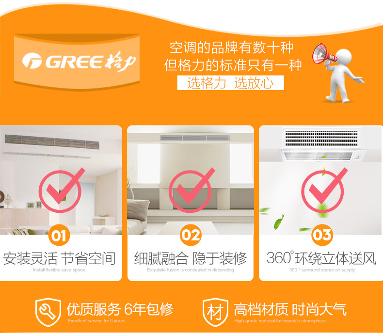 我公司为家用/商用中央空调的设计、销售、安装为一体的空调综合服务公司。所有的安装师傅都是格力统一培训上岗,拥有12年的安装团队和精湛的设计技术,安装采用统一保压铜管和 PVC冷凝管,保证不漏氟、不漏水。本月活动:购买中央空调赠送进口品牌净水机前置或新风机1个,买贵退差价。