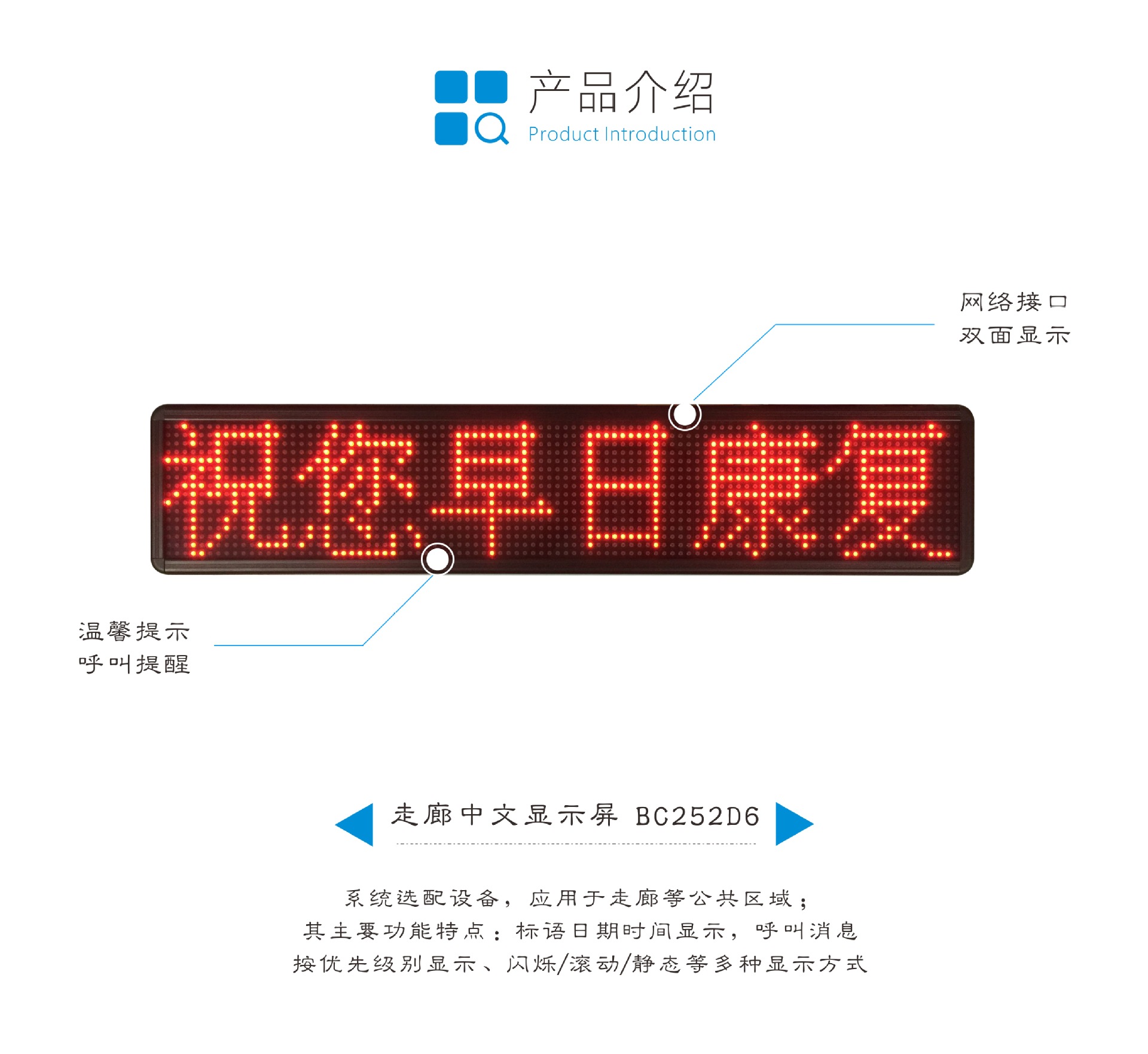 医护对讲 全视通医护呼叫系统 走廊中文显示屏 信息屏双面滚动显示