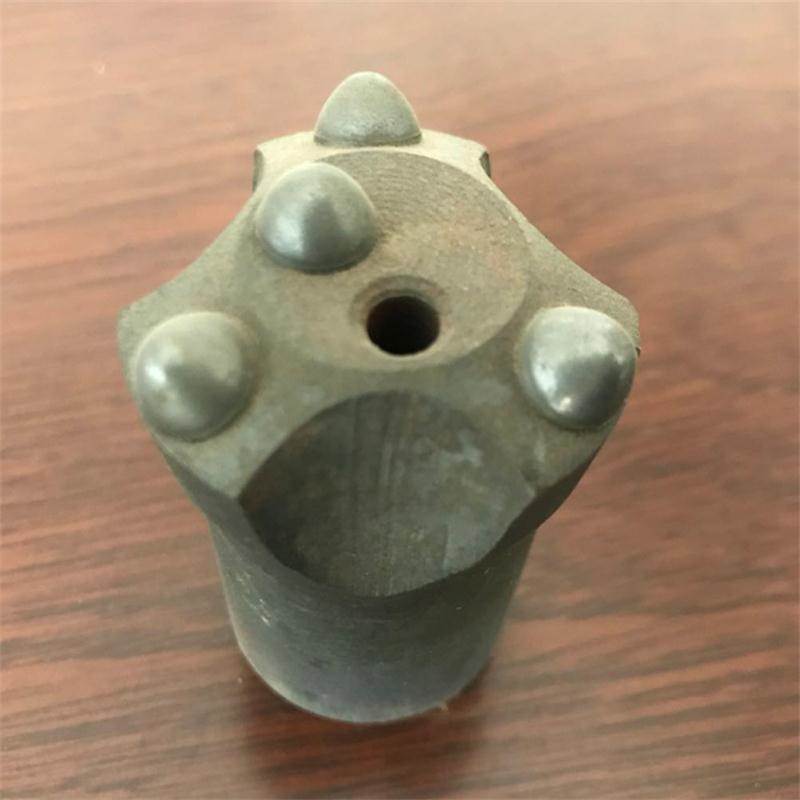 球齿系列钎头钝化使用周期长,有利于节省辅助工时,减轻工人体力劳动和加快工程速度。因此不同直径的锥度连接和螺纹连接球齿钎头被 广泛应用在各类硬脆岩石中配合钻车凿岩。cm01