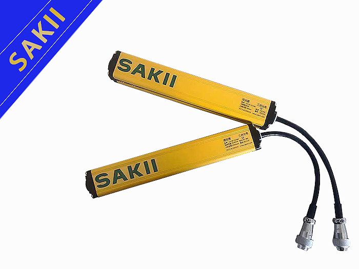 测量用光幕是一种特殊的光电传感器,与普通的对射式光电传感器一样,包含相互分离且相对放置的发射器和收光器两部分,但其外形尺寸较大,为长管状。测量光幕发射器产生的检测光线并非如普通传感器般只有一束,而是沿长度方向定间距生成光线阵列,形成一个“光幕”,以一种扫描的方式,配合控制器及其软件,实现监控和测量物体外形尺寸的功能。