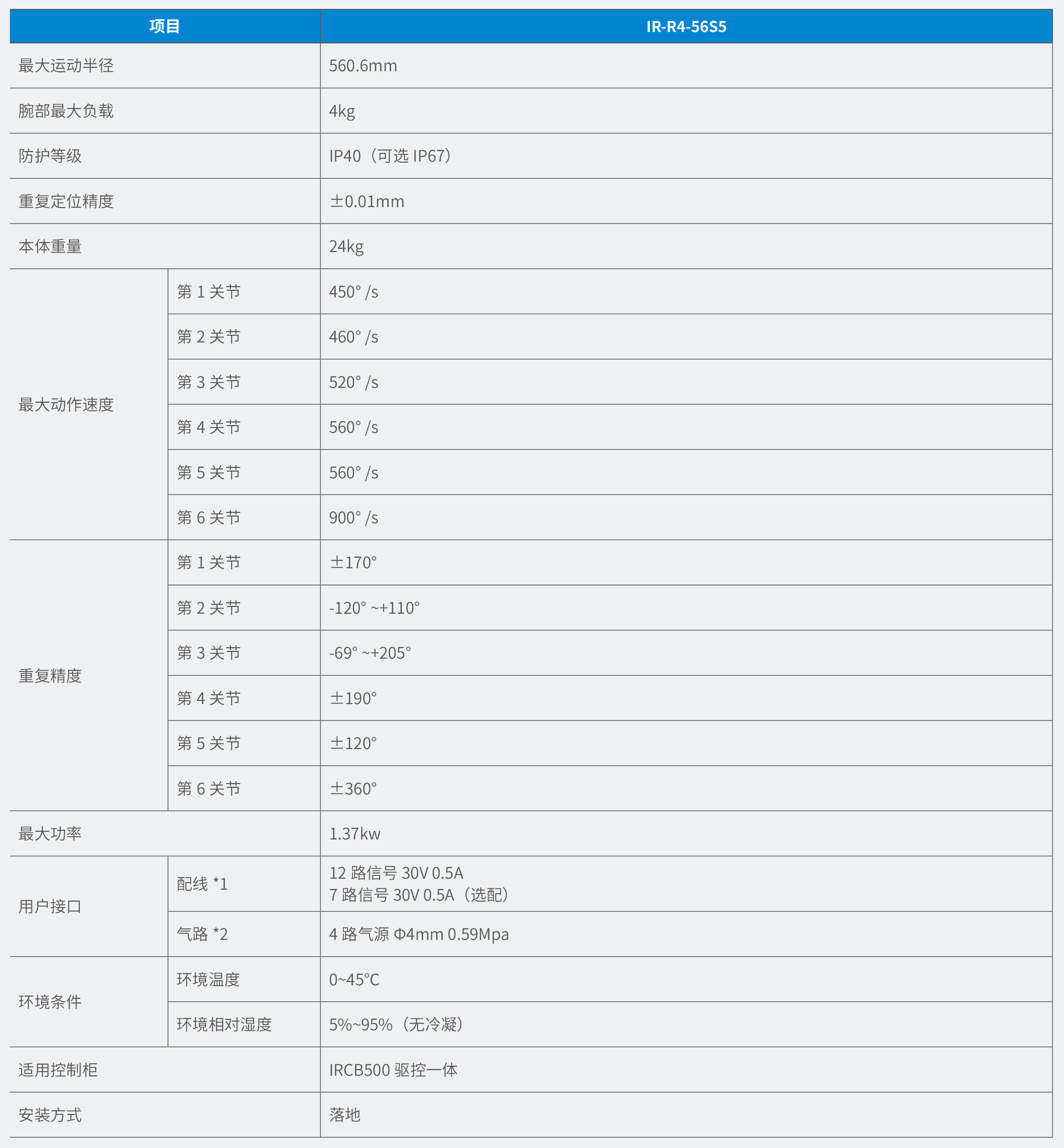 IR-R4系列六关节机器人结构紧凑,整机高度、结构高度。应用行业主要分布在3C、锂电、光伏、显示行业,同时满足产品在装配、涂胶的场景应用需求。