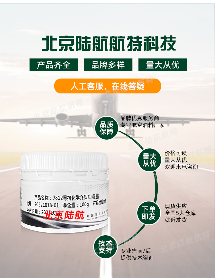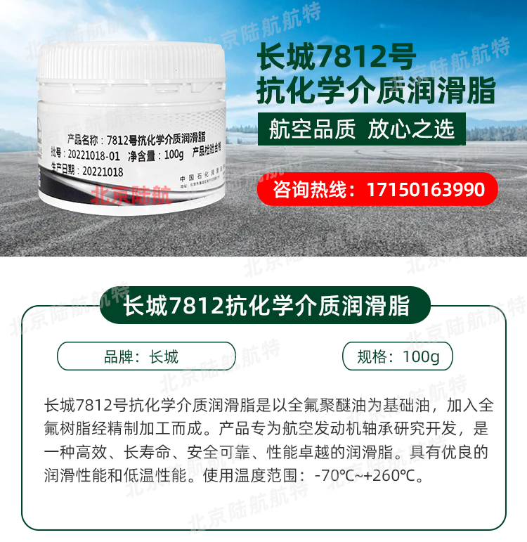 7812抗化学介质润滑脂是中国石化润滑油生产的一种外观为白色均匀油膏的氟脂,7812润滑脂是以全氟聚醚油为基础油,加入全氟树脂经精制加工而成。产品为航空发动机轴承研究开发,是一种高效、长寿命、安全可靠、性能的润滑。