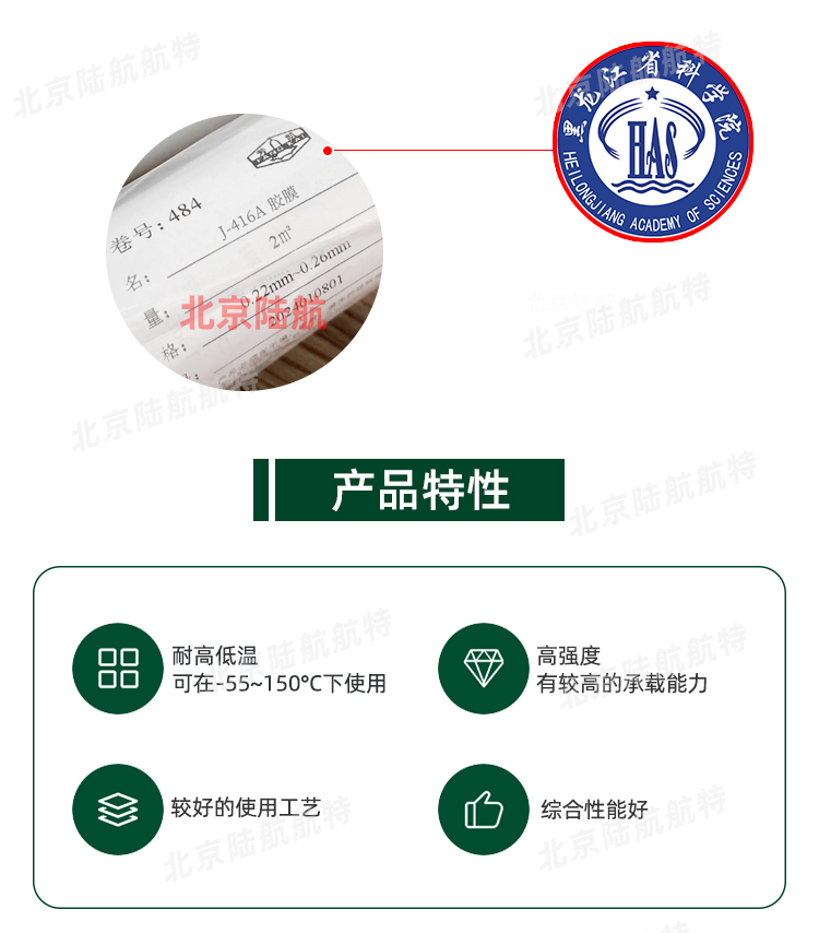 J-416A和J-416U胶膜是黑化院研制的特种胶粘剂产品,主要应用于航空航天、jun工、电子等领域。J-416A胶膜为改性环氧胶膜,可能含耐高温填料(如聚酰亚胺或芳纶增强)。