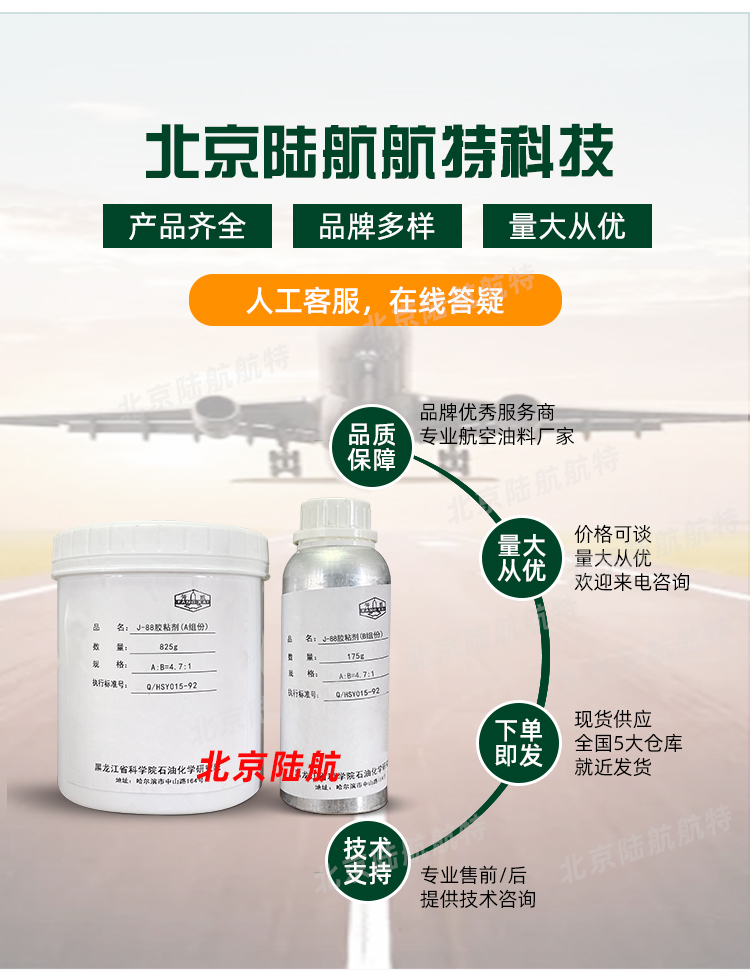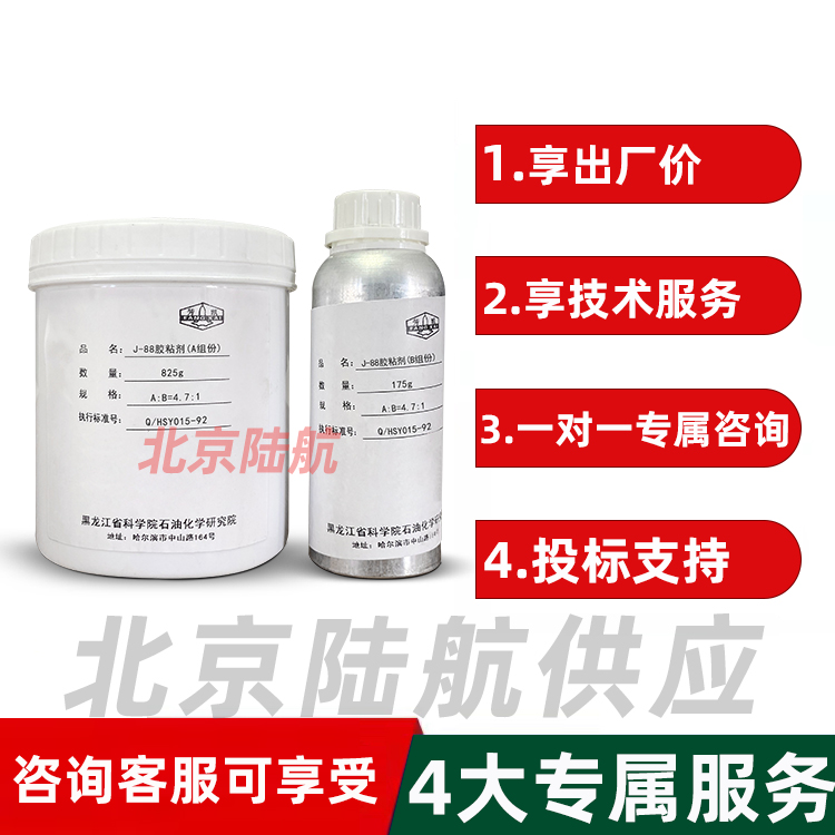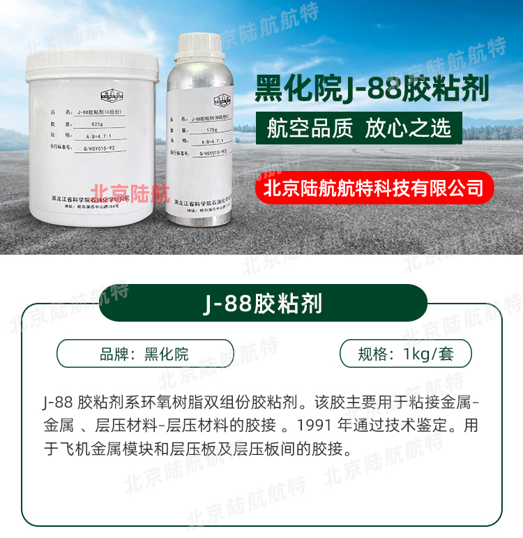J-88胶粘剂系环氧树脂双组份胶粘剂,该胶主要用于粘接金属–金属 、层压材料–层压材料的胶接。j-88胶用于飞机金属模块和层压板及层压板间的胶接。