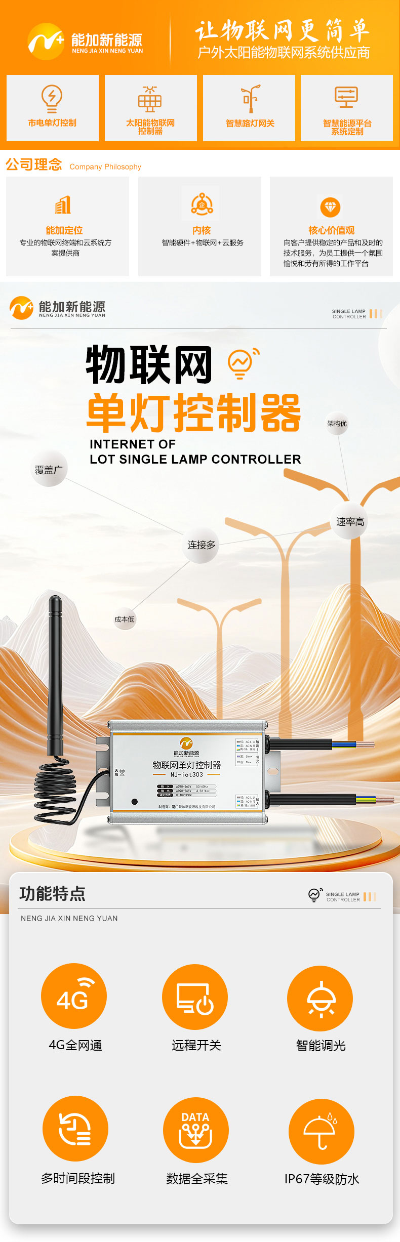 智能照明控制器 NB远程灯控器 路灯控制系统 智慧照明 厦门能加NJ-iot301