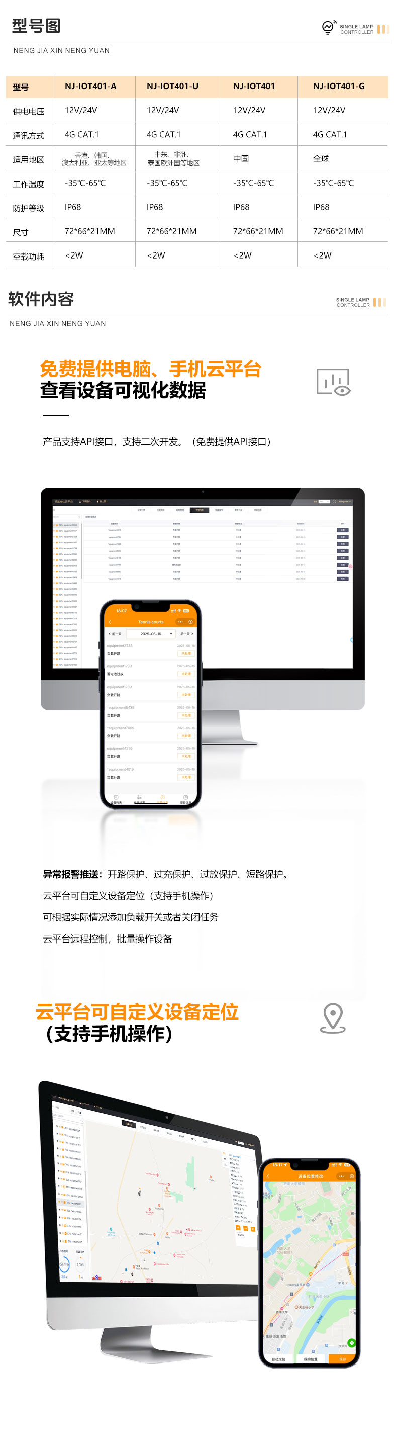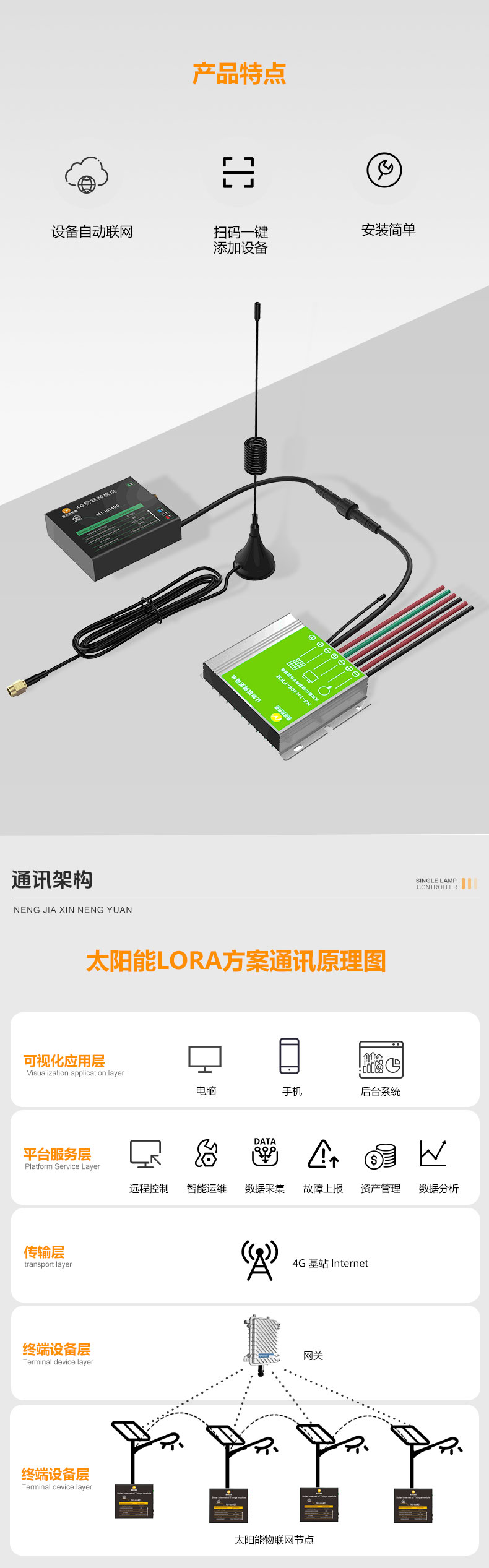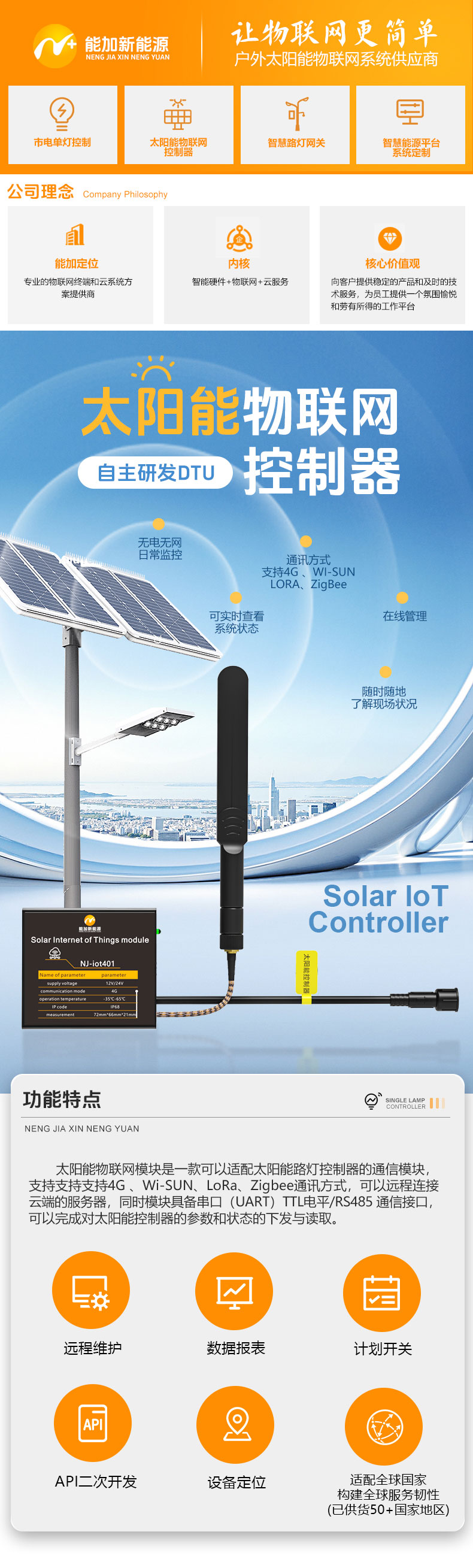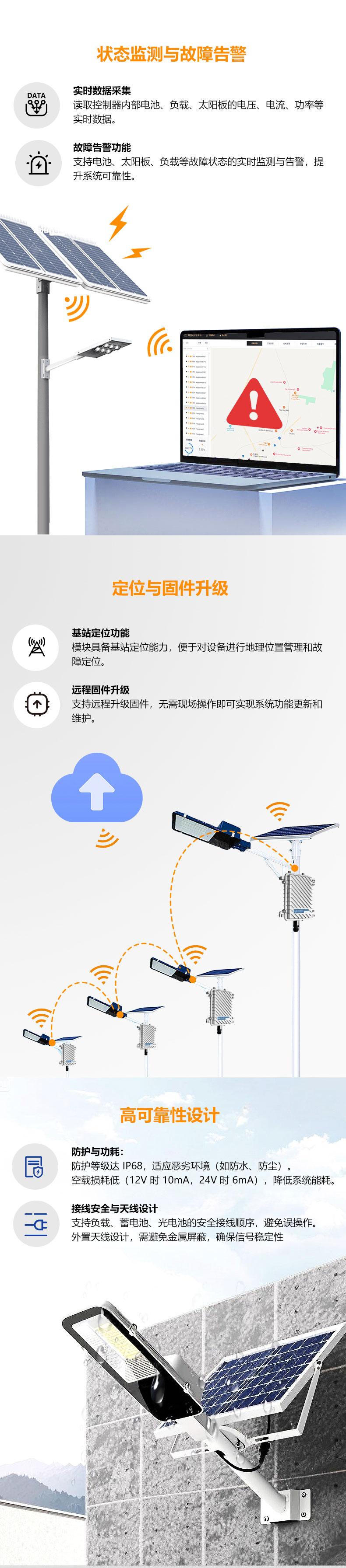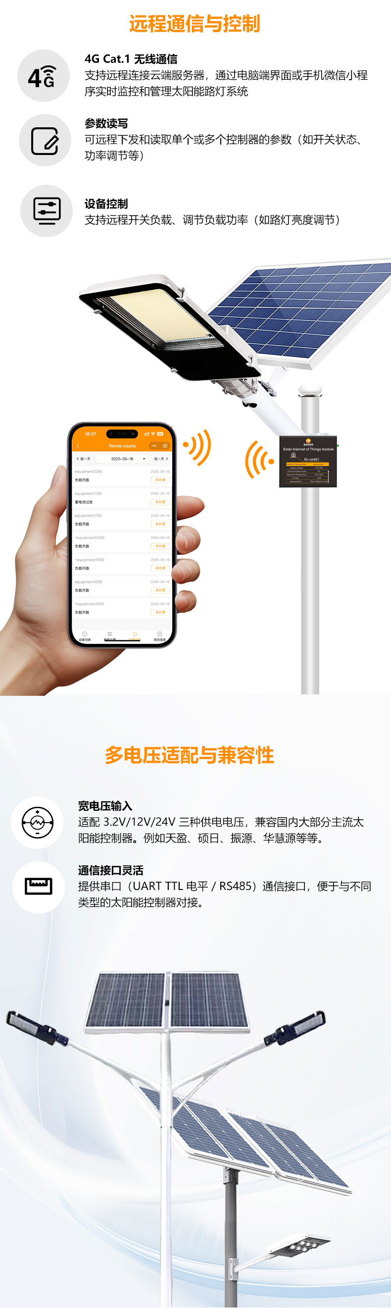 太阳能路灯控制器 太阳能物联网模块 数据采集上报 远程控制开关 云平台操作 实时监控