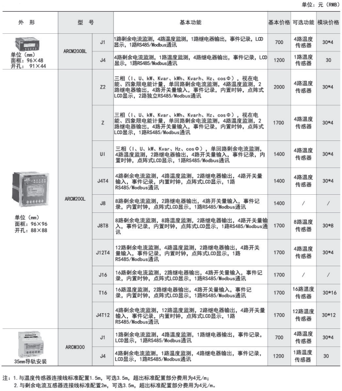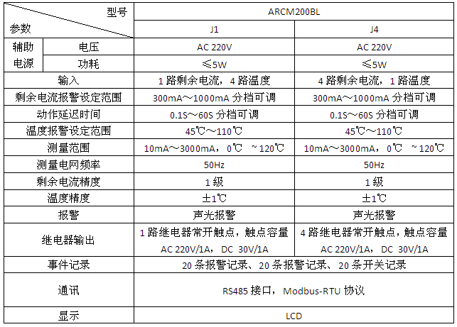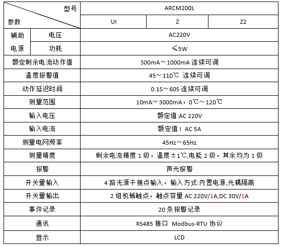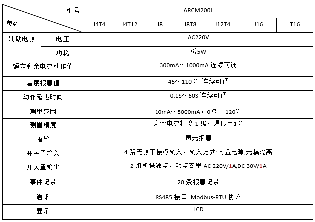 订货范例:具体型号:ARCM200L-J8技术要求:8路剩余电流检测通讯协议:RS485接口 Modbus-RTU协议辅助电源:AC220V