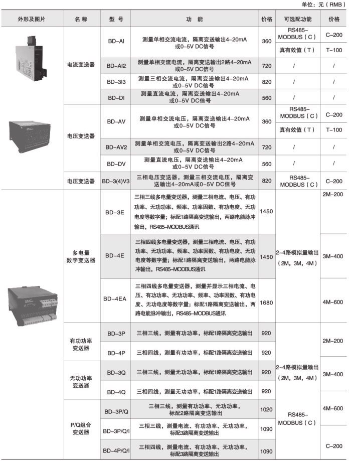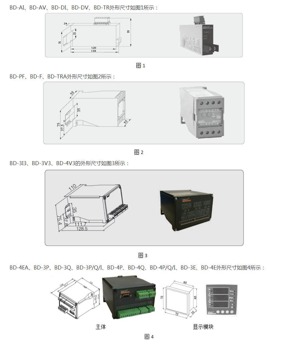订货范例:具体型号:BD-AI技术要求:输入AC 0-5A;输出DC 4-20mA;准确级0.5。通讯协议:无辅助电源:AC/DC220V