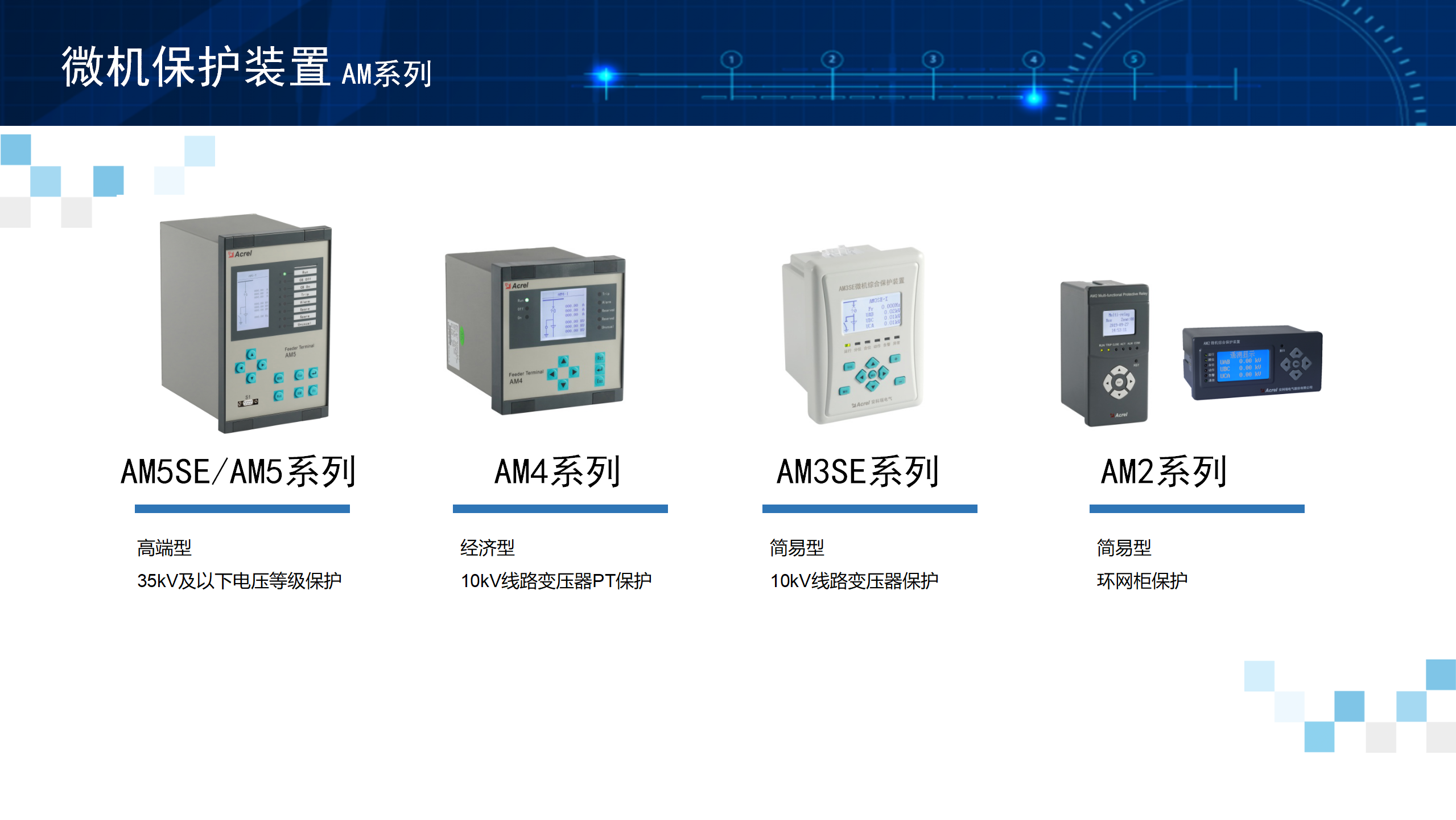 AM系列微机保护测控装置(以下简称装置)集保护、测量、控制于一体,适用于35kV及以下电压等级的用户终端变电站(所),可实现用户变电站的保护和测控。应用领域覆盖电力、水利、交通、石油、化工、煤炭、冶金等行业。