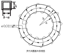 罗氏线圈是一种空心环形的线圈,有柔性和硬性两种,可以直接套在被测量的导体上来测量交流电流。其设计基本原理如图: