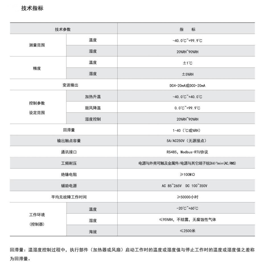 技术要求:湿度≧85%RH加热除湿,≦80%停止;温度≧40℃鼓风降温,≦5℃加热升温。