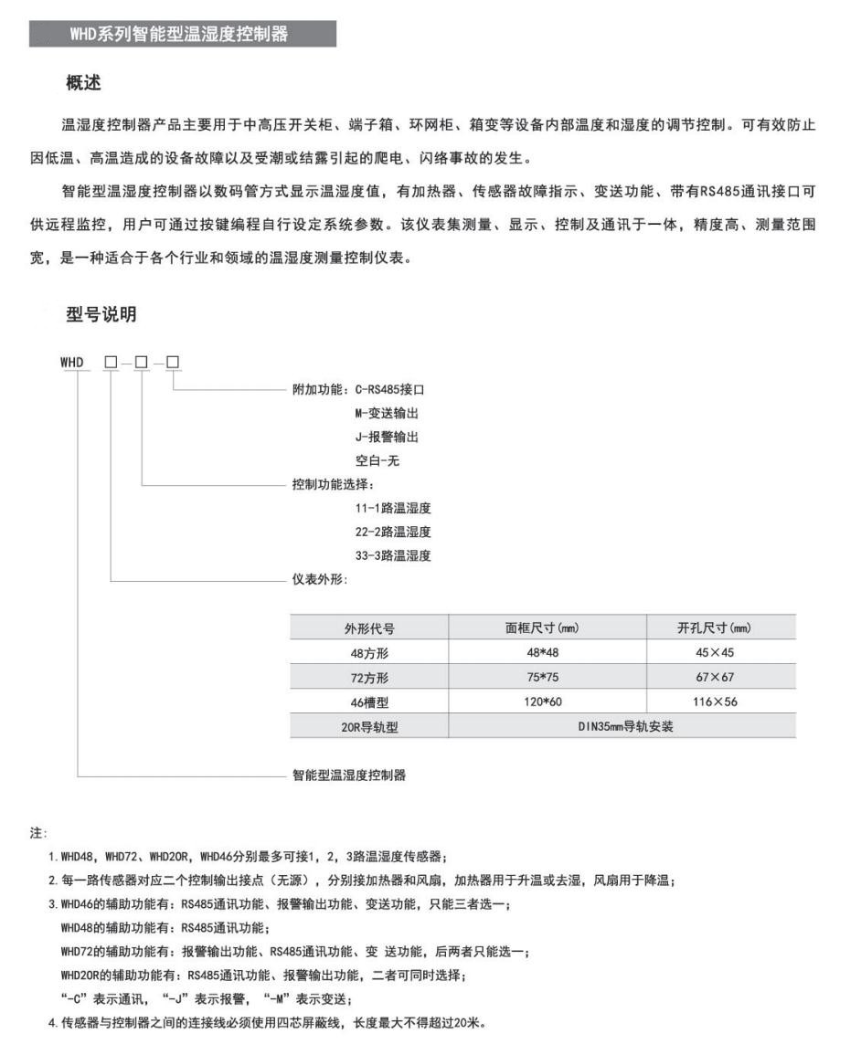 WHD系列温湿度控制器运用传感器检测柜内的温度与湿度值,并通过控制外接的风扇与加热器对温度与湿度值进行调节,可有效防止因低温、高温造成的设备故障以及受潮或结露引起的爬电、闪络事故的发生。