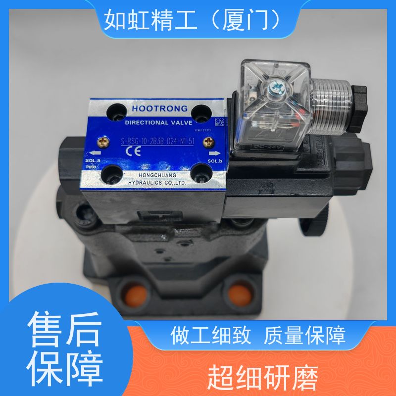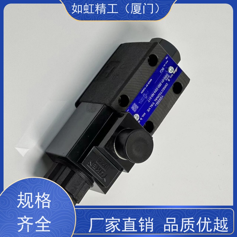 该液压电磁阀主要基于电磁力和液压原理工作。当给电磁阀的电磁线圈通入240V交流电源时,电磁线圈会产生磁场,磁场力吸引阀芯克服弹簧力等阻力进行移动。阀芯的移动改变了阀内油液的流动通道,从而实现对液压系统中油液的方向、压力和流量的控制。当电源断开时,电磁力消失,阀芯在弹簧力的作用下回到初始位置,恢复原来的油液流动状态。