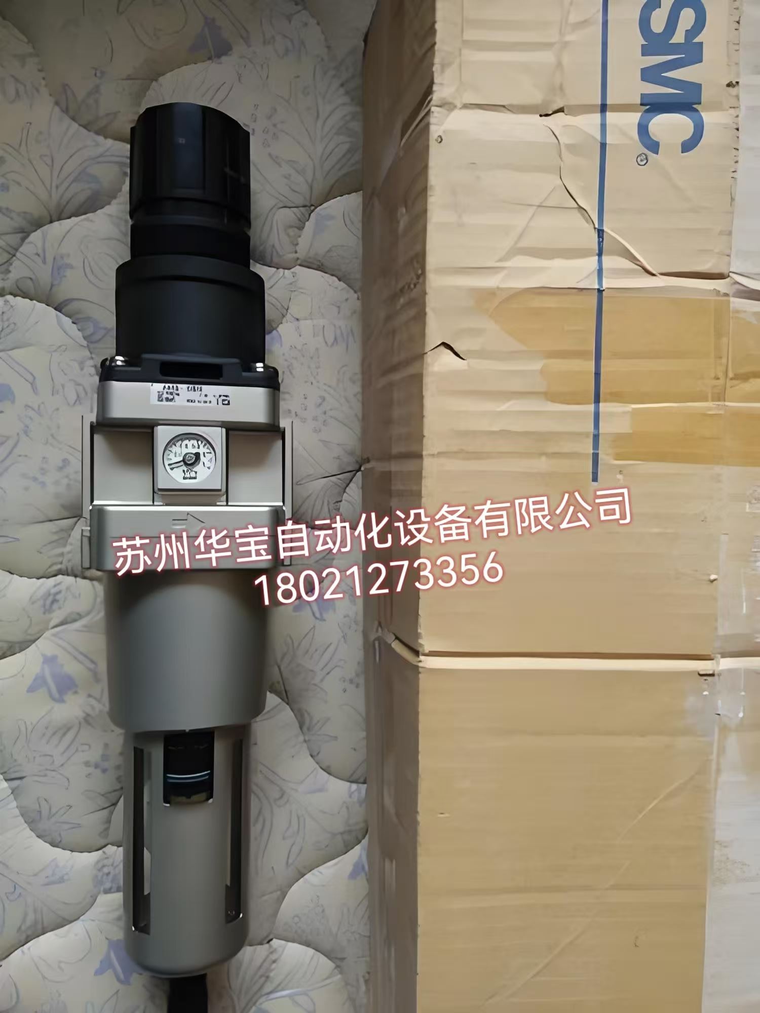 SMC气源过滤器AC40A - 04 - A空气调压阀三联件由空气过滤器、调压阀和油雾器三个部分组成。空气过滤器主要用于去除压缩空气中的灰尘、铁锈、水分等杂质。其工作原理是通过滤芯的拦截和吸附作用,将杂质阻挡在滤芯表面,从而使洁净的空气通过。调压阀则负责调节压缩空气的压力,使其稳定在设备所需的工作压力范围内。它通过内部的弹簧和膜片结构,根据进气压力的变化自动调整阀门的开度,确保输出压力的稳定。油雾器的作用是将润滑油雾化后混入压缩空气中,为气动设备的运动部件提供润滑,减少磨损,延长设备的使用寿命。