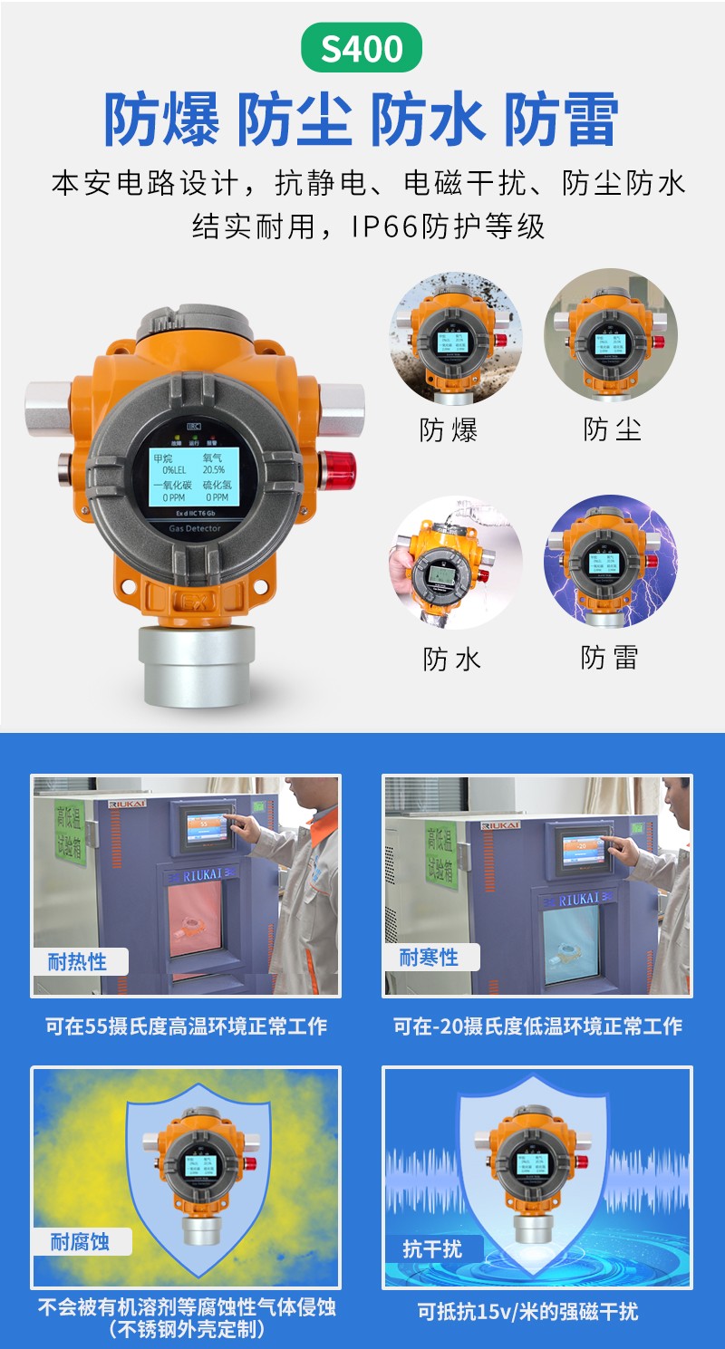 固定式四合一气体报警器探测S400防爆型甲醛检测报警器,可自由定制4种可燃气体或有毒有害气体传感器进行检测,防护等级IP65,防爆证书、消防证书齐全