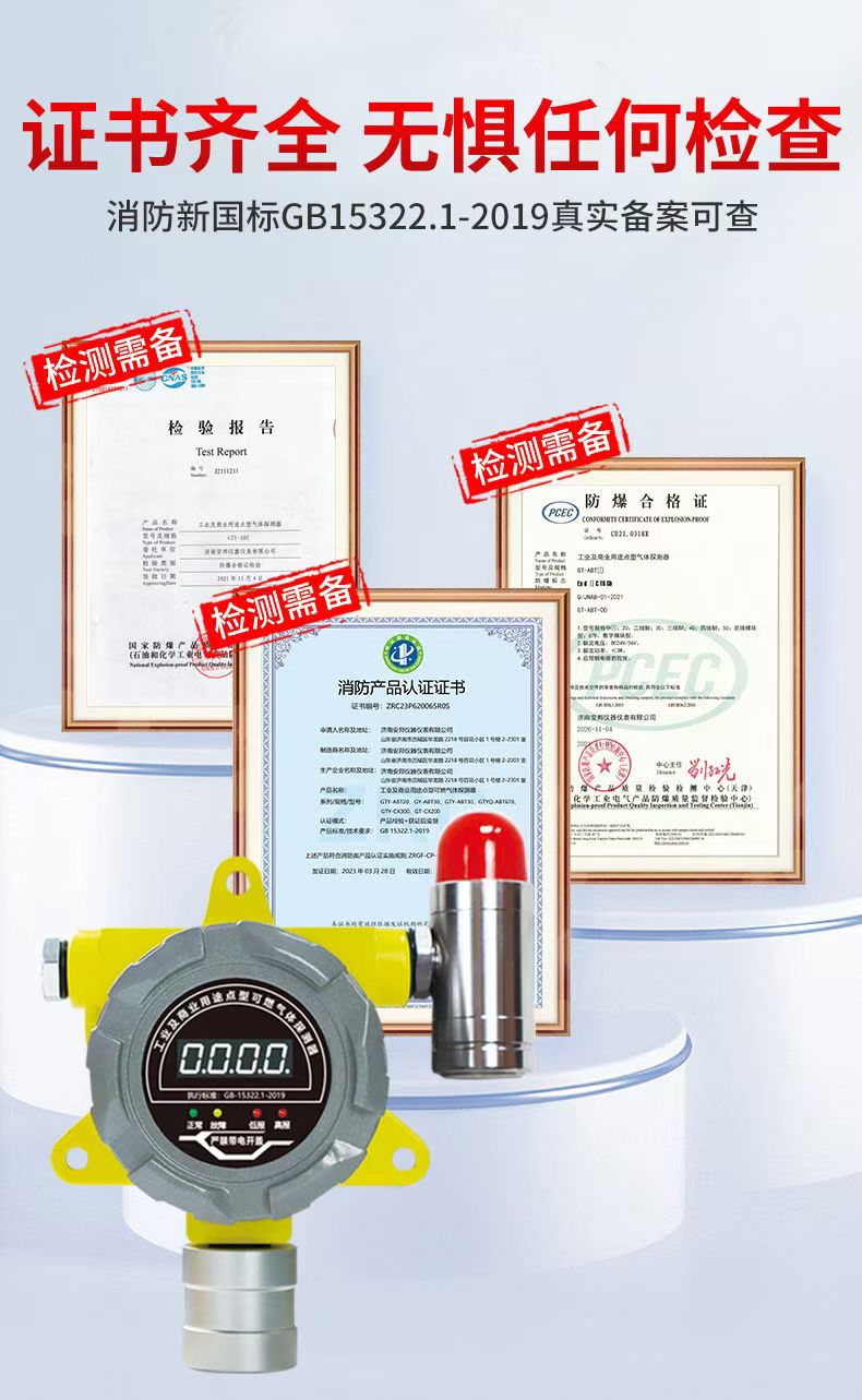 可燃气体报警器资质证书:防爆合格证、生产许可证、检验报告、型式认可证书等国家各项证书