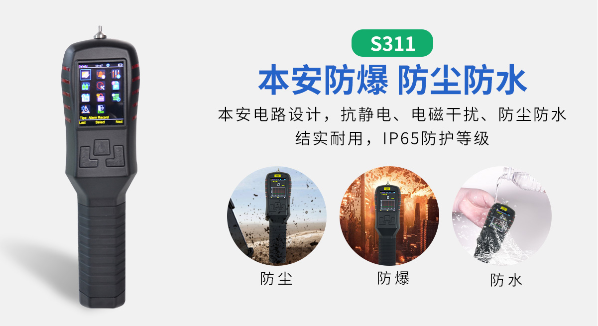 便携式硫化氢气体报警仪探测S311防爆型单一气体检漏报警仪器,可自由定制可燃气体或有毒有害气体传感器进行检测,防护等级IP65