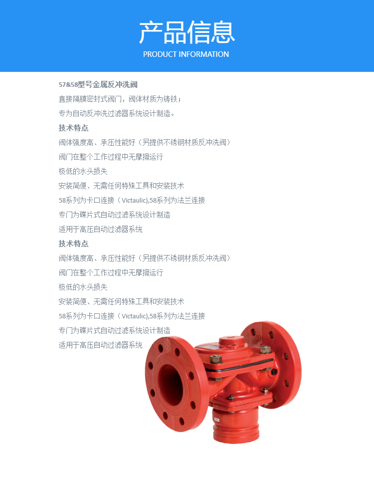 阀体强度高、承压性能好(另提供不锈钢材质反冲洗阀)