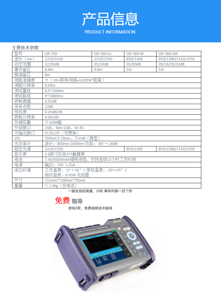 GR760-SM光纤仪光时域反射仪 光缆断点寻障仪故障检测仪