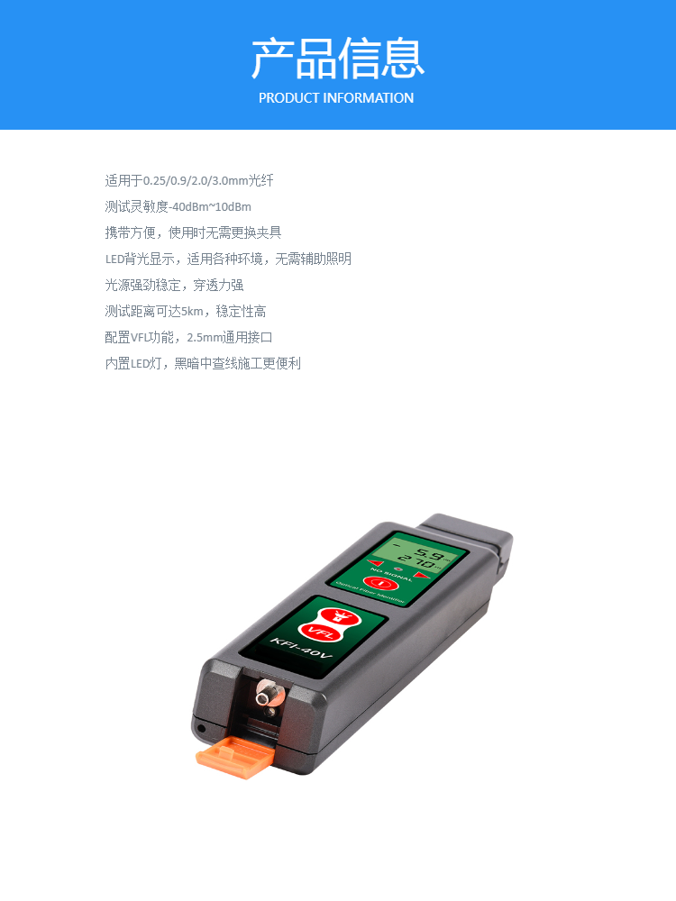 内置VFL功能,2.5mm通用接口