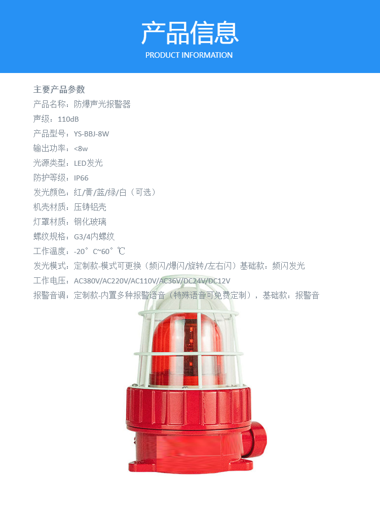 YS-BBJ-8W防爆声光报警信号器 通电报警 颜色可选