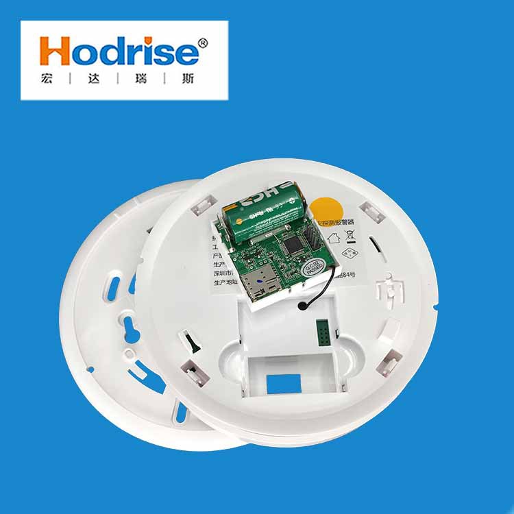 设备内置NB-IoT模块,检测到探测范围内的火灾烟雾发生后,进行独立声光报警,并上报信息至云平台向移动端用户发送报警信号。