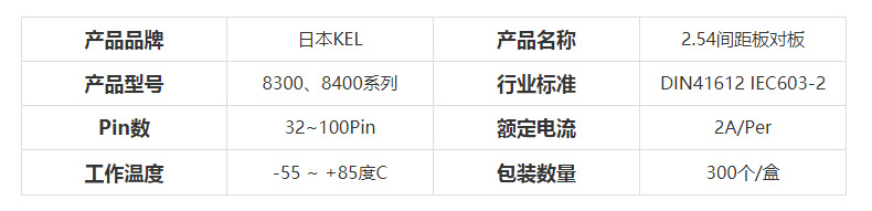 KEL代理 8300-096-281-N 2.54mm间距 96Pin 欧式连接器 板对板