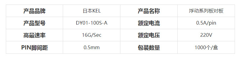日本KEL代理 DY11-100S-3 医疗B超设备 浮动板对板0.5mm间距100Pi