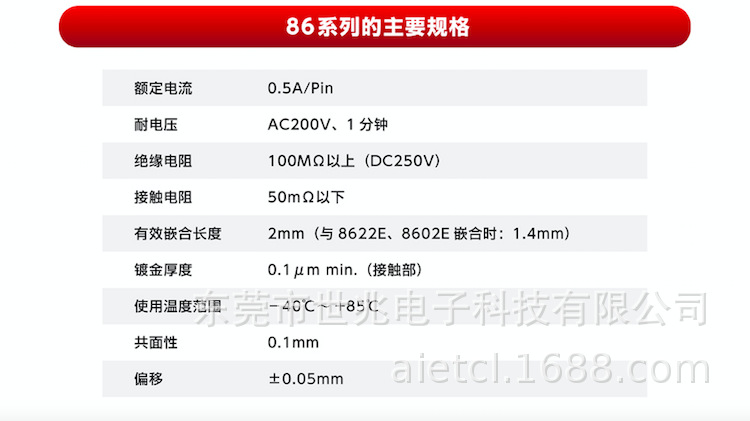 保证插拔次数500次,确保有效嵌合长度2mm,实现高接触信赖性。