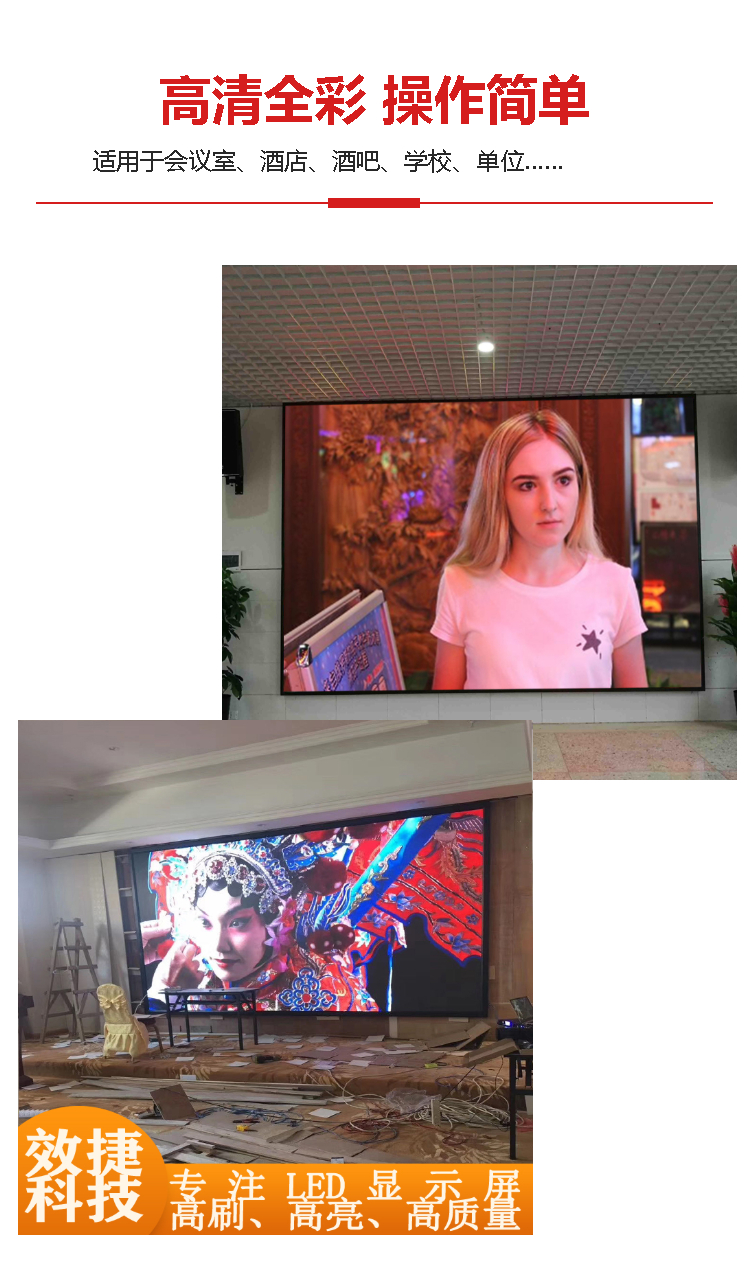室内酒店酒吧会议室学校LED显示屏 |