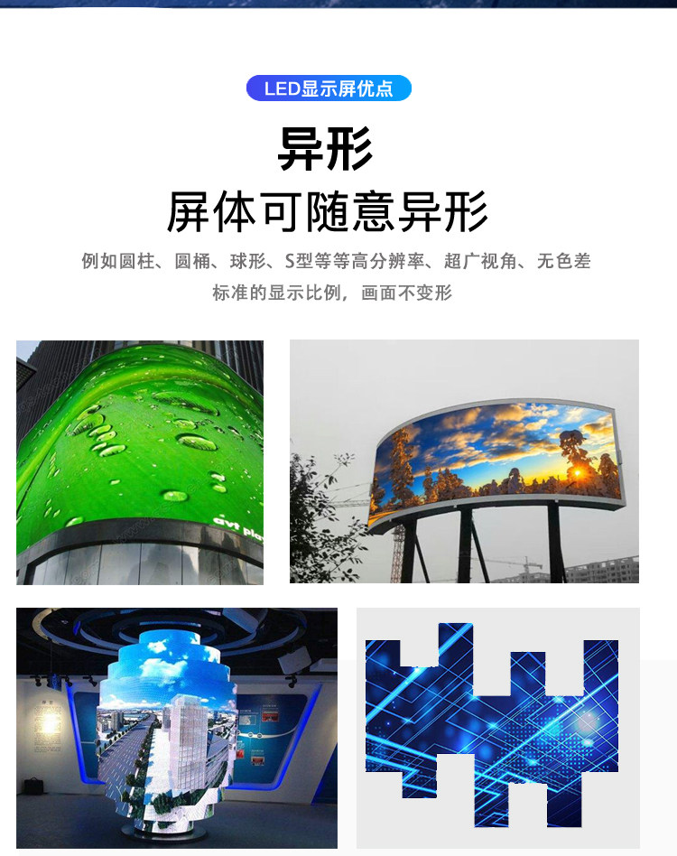 ,图文屏、还有异型屏和创意屏等等,这也因为有了他们,才能更好的让我们所处城市发光发亮