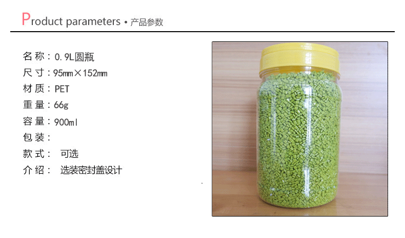 900ml食品瓶,适合装坚果、零食、花茶、饼干等。密封性好,透亮度高。
