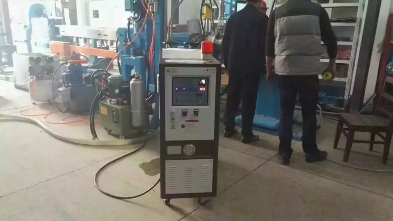 模温机有什么用途:模温机是用来调节温度的平衡度,可以升温也可以降温。模温机利用高热传性的导热媒体以便在很短的时间内将用热设备内多余的热送走。在设定好热平衡温度后,能自动控制其温
