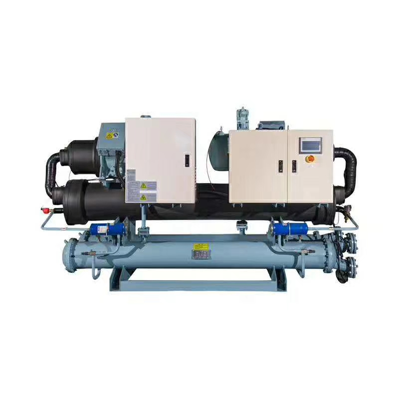 螺杆式冷水机组特点压缩机采用螺杆式、功率比涡旋式的大,主要应用于大型工业制冷和中央空调系统方面。螺杆式冷水机工作原理:冷媒经压缩机绝热压缩以后,变成高温高压状态。被压缩后的气体