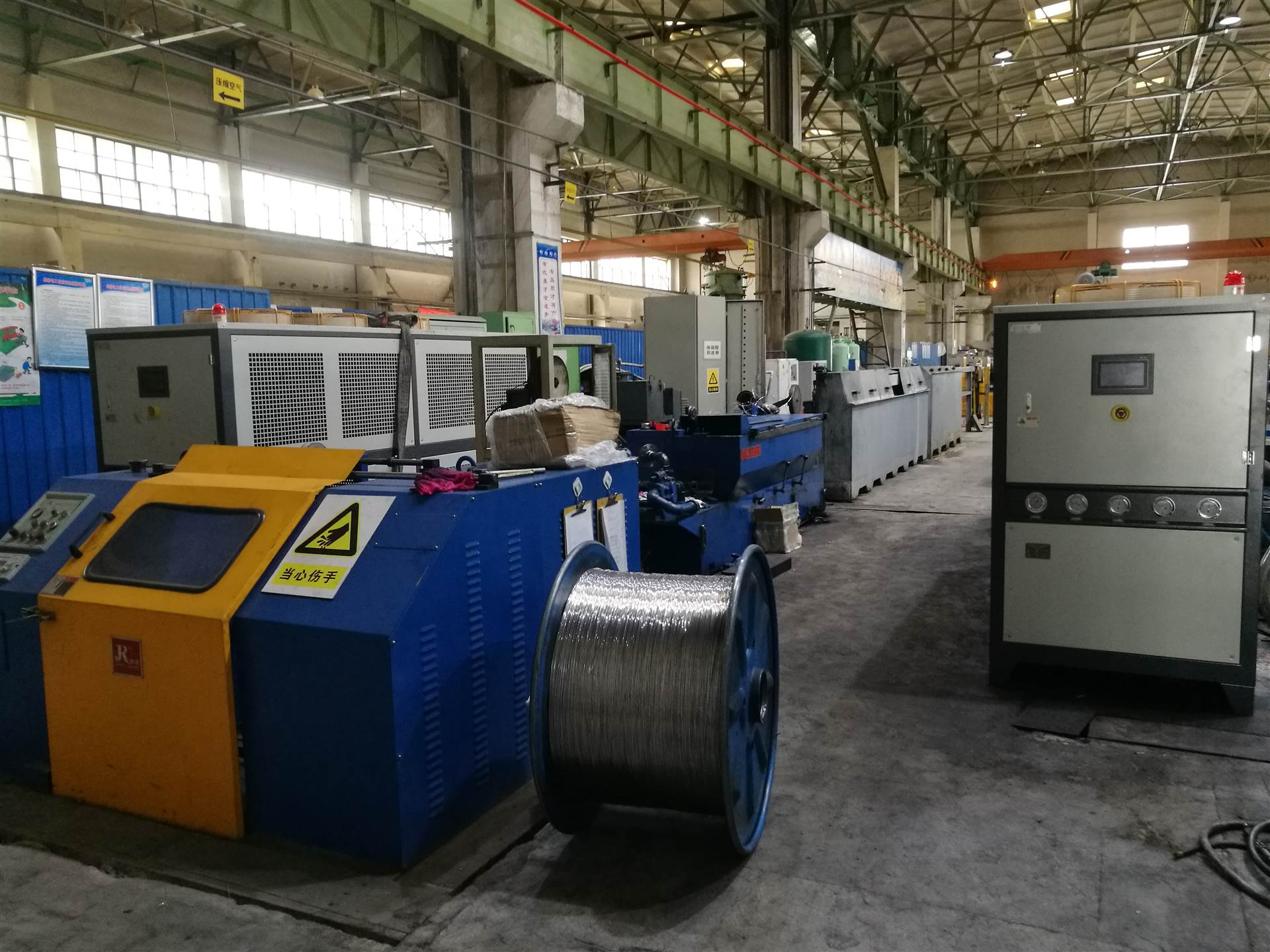 拉丝机,多个拉拔头组成的小型的连续生产设备,通过逐级拉拔,可以一次性地把钢丝拉到所需的规格,所以工作效率比较高。但是,在高速拉拔过程中钢丝与拉拔头会产生摩擦,摩擦会使拉丝油