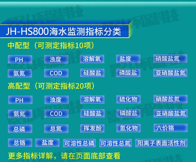 JH-HS800 型海水环境现场监测仪(旗舰版):【PH、浊度、溶解氧、盐度、COD、氨氮、盐氮、亚盐氮、硅酸盐、磷酸盐、总磷、总氮、挥发酚、、阴离子表面活性剂、六价铬、总铬、硫化物、可溶性总磷、可溶性总氮】