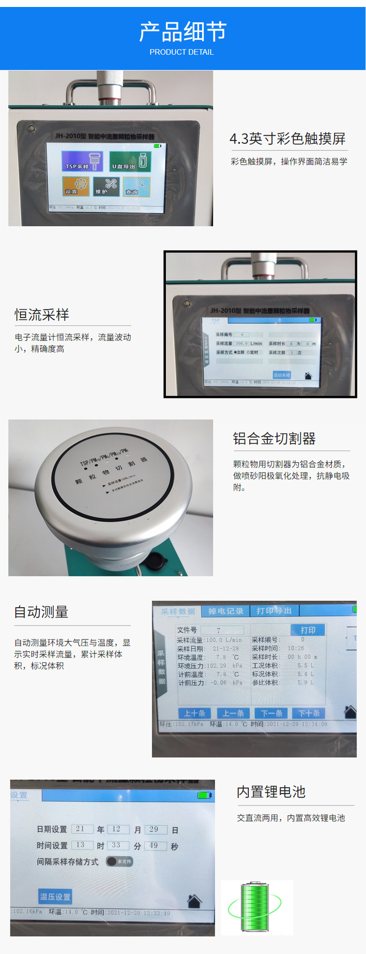 6.TSP/PM10/PM2.5采样头采用铝合金材质,抗静电吸附;