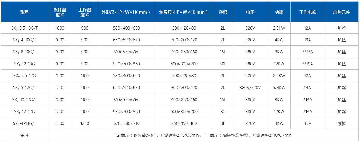 T 系列:陶瓷纤维炉膛、G 系列:耐火砖炉膛