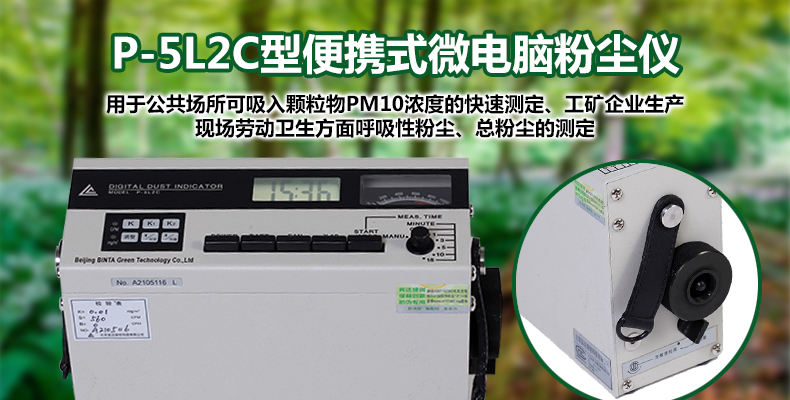 P-5L2C型便携式微电脑粉尘仪是在引进日本柴田P-5L2型便携式数字粉尘仪基础上加入单片机控制的新一代快速测尘仪器,适用于公共场所可吸入颗粒物PM10浓度的快速测定、工矿企业生产现场劳动卫生方面呼吸性粉尘、总粉尘的测定。近年来有数千台P-5型仪器在全国各地使用,是同类测试仪器中的产品。