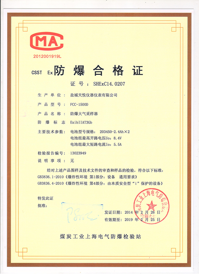 产品简介 FCC-1500D型个体防爆大气采样器是广泛应用于环境卫生监测、职业卫生监测、工矿企业、科研工作场所等采集工作场所内实际接触有毒有害物质的新型仪器。仪器采用新微电脑芯片控制技术,内置高能镉镍充电电池,一次性充电连续运转时间可达10小时,操作简易、记时精度高、坚固耐用、选时方便快捷,倒计时0~99小时59分范围任意选择,停机时自动关断电源。是目前国内同类仪器中较为理想的采样器。