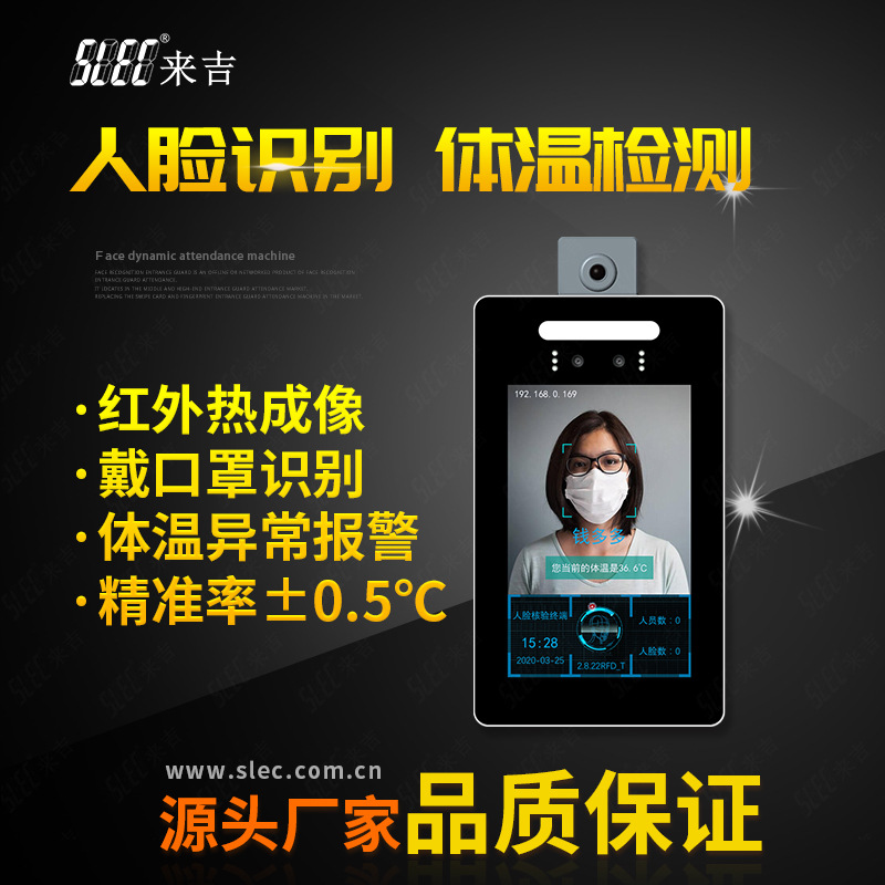 来吉体温检测门禁是一款采用智能检测戴口罩人脸识别算法和热成像体温检测技术开发的门禁产品。系统支持1: 1和1:N模式下自动切换,基于Android系统环境运行,具有秒级完成人脸识别速度和体温检测,准确度高、安全性高、稳定性好等特点。