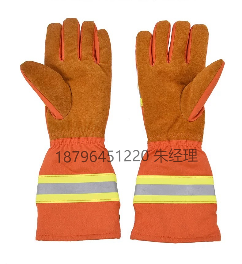 手套由牛皮和性阻燃芳纶面料缝合而成。