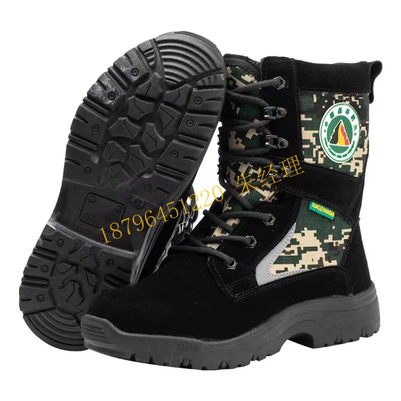 采用欧标防砸钢头,凯芙拉中底防穿刺、阻燃橡胶大底,阻燃纯棉帆布,阻燃牛皮,阻燃鞋带,阻燃车线制作、多角度反光条设计,满足小腿部及足部防护需求,适合长度行军及山岳攀爬灭火作战