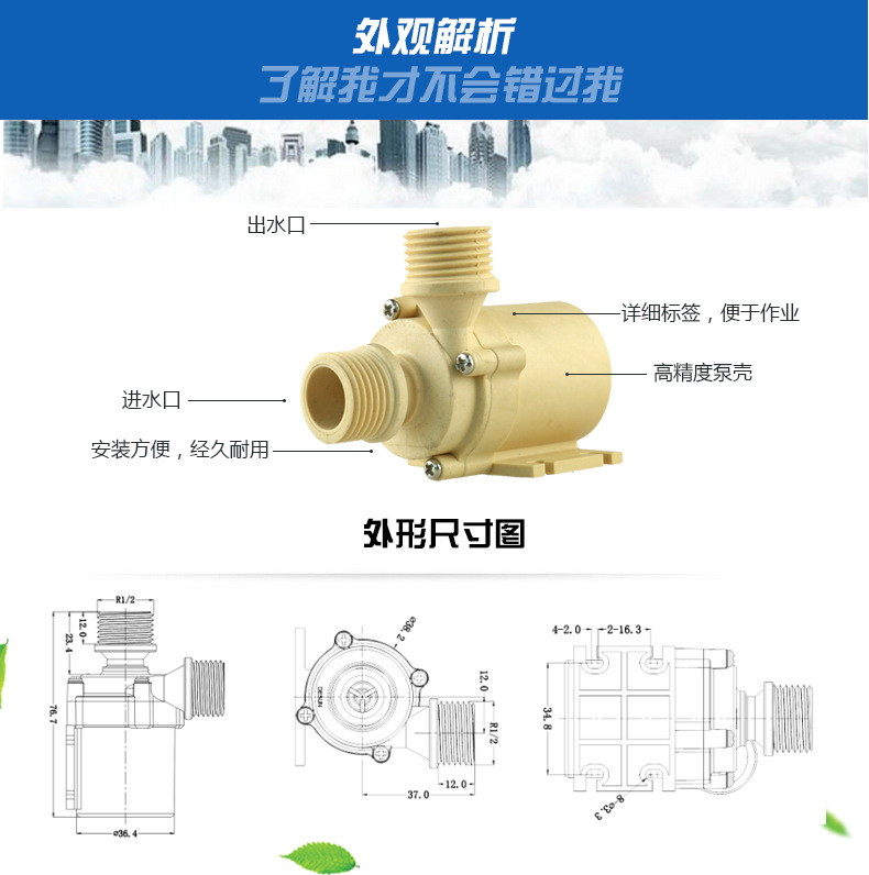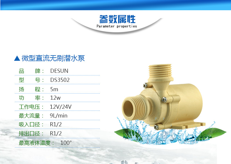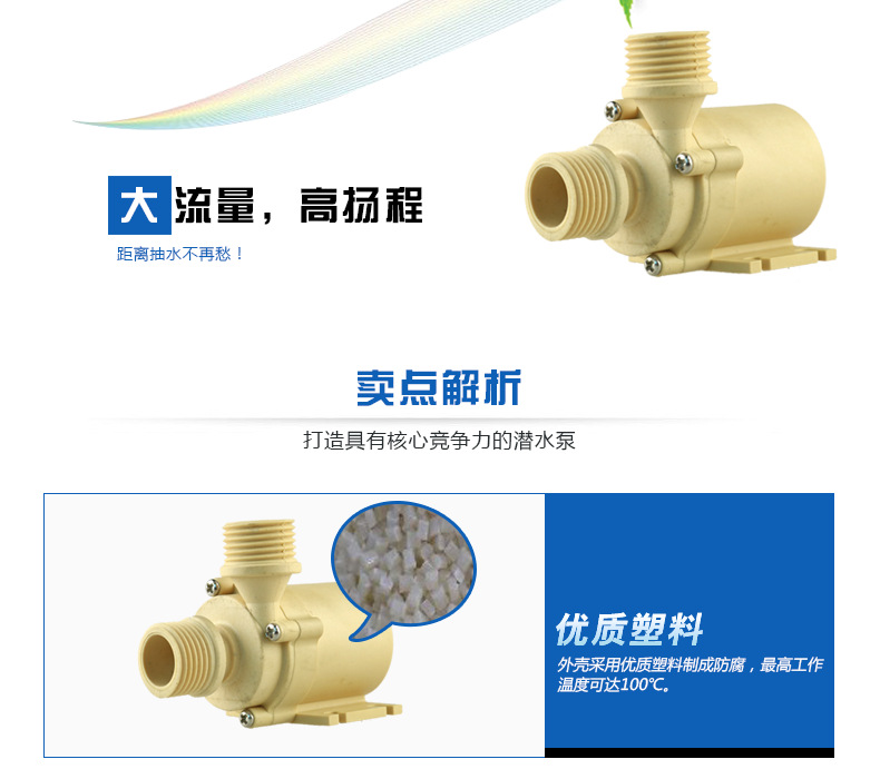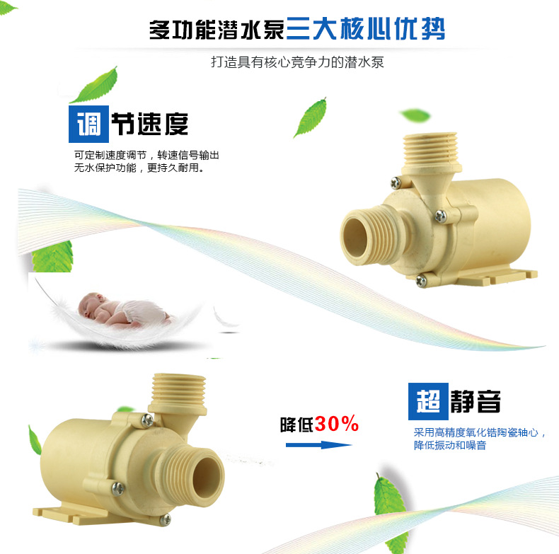 食品级微型水泵DS3502,电压12v-24-扬程5米,结构设计无自吸功能,体积小,方便安装,寿命长达20000小时,水陆两用 、适用于水族、太阳能水循环系统、水床、沐足、无土栽培,喷泉等