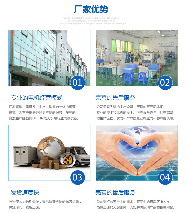 无刷直流水泵,使用永磁无刷直流电机的原理,在其转子上加上叶轮,在外壳结构上设计成使液体作离心运动的腔体构成,因没有碳刷摩擦,所以不会产生火花; 效率高、低功耗、比有刷电机寿命长、噪音低。