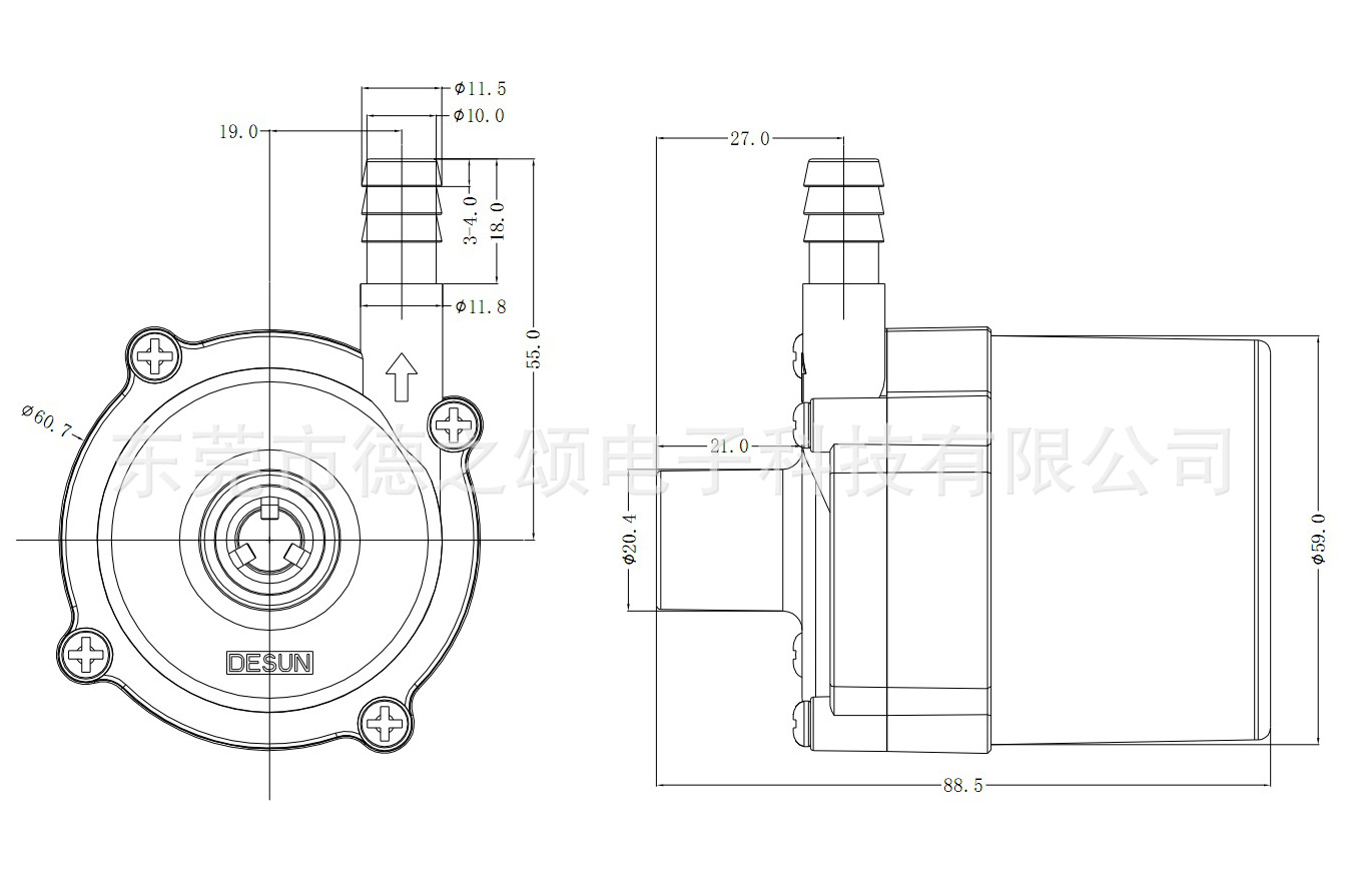 2.请在标定电压范围以内使用,超出范围可能会造成水泵损坏